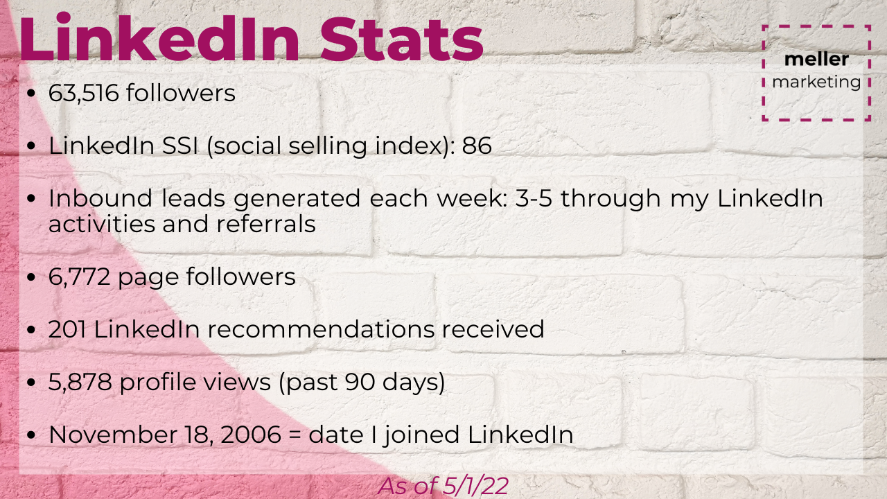 âIf you're looking for a LinkedIn Coach who is knowledgeable, strategic, and committed to your success, look no further, Brenda Meller will exceed all your expectations. In over my 20 years of work in marketing, sales, and brand development I would place Brenda in the top 5% of marketing professionals.â
