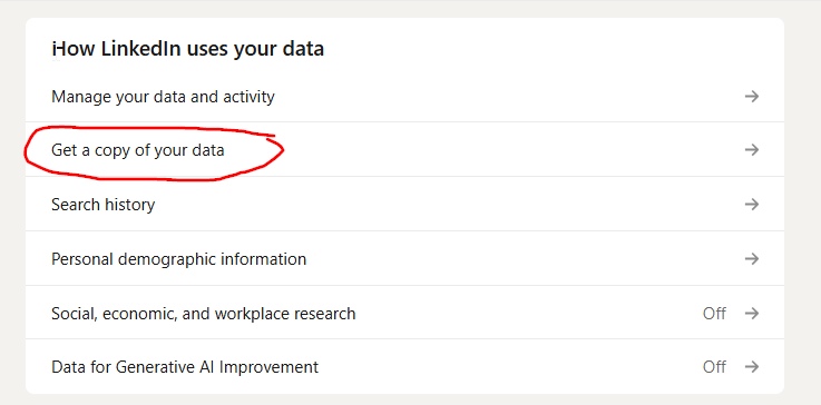 - Request Your Full Data Archive: In the center of the screen, look for the section titled "How LinkedIn uses your data" and click on Get a copy of your data.