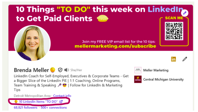 I've learned recently from fellow LinkedIn experts (John Espirian and Kevin D. Turner) that LinkedIn is retiring the feature that allows all members to add a custom website link to their top header card.  Shown here is my custom website link, as an example: